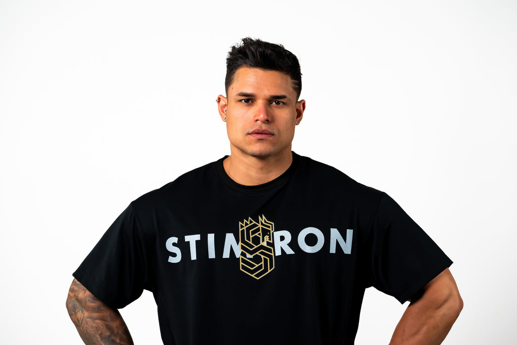 かつてボディビル界のブルースリーと称され、今や山岸秀匡のトレードマークでもあるドラゴン。左腕に見えるドラゴンをモチーフにSTIMIRONの新しいラインとして、「アイアンドラゴンロゴ」を作りました。