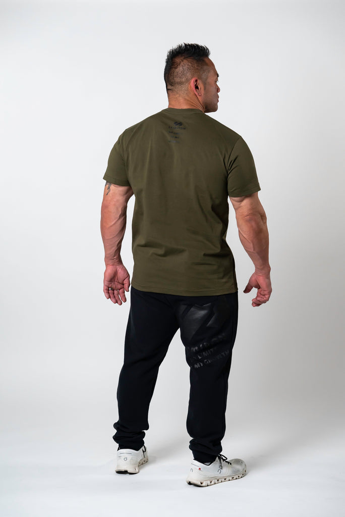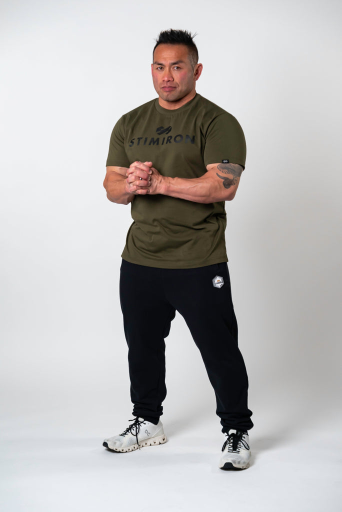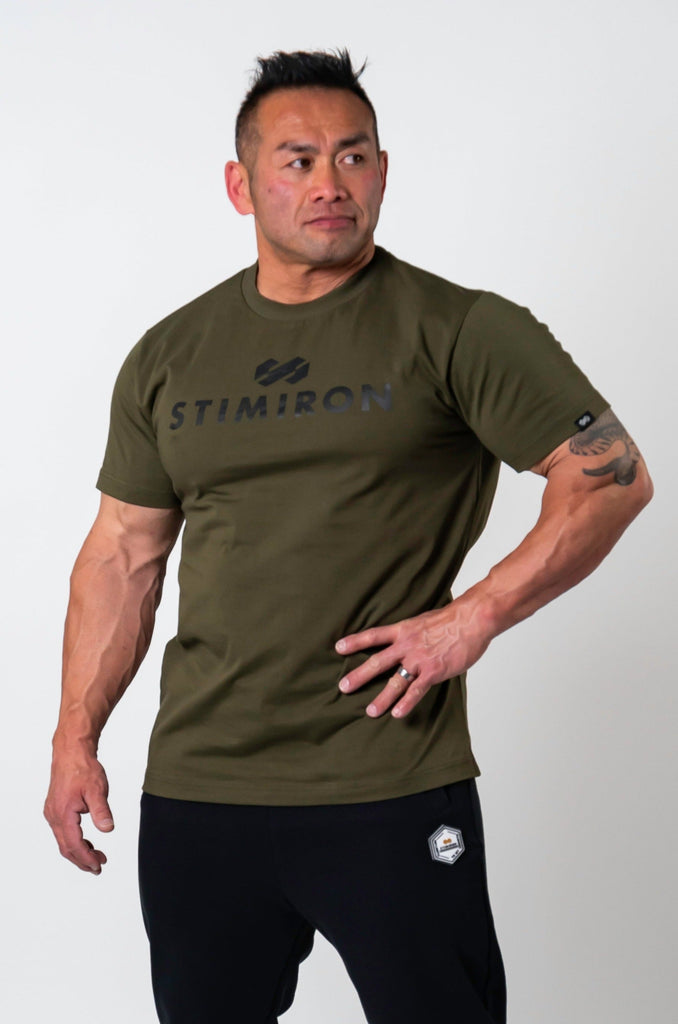STIMIRONのベーシックスタイル。綿100%でもストレッチ性があり、心地よいフィット感がある。自宅とジムの往復でも着られるタウンユース要素あり。多色展開でオリジナル性が出せるのも魅力の一つ。