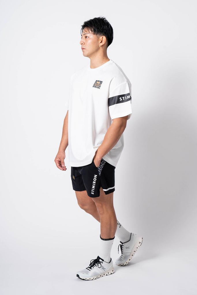 オーガニックコットン100%のECO素材を使用。ゆったり着れるBIGシルエットのティーシャツです。STIMIRONのロゴから着想を得て、いくつものIRON(鋼鉄)が連なる幾何学デザイン「幾何学-GEOMETRIC DESIGH」が生まれました。トレーニングでもタウンユースでも気軽に楽しめるTシャツです。