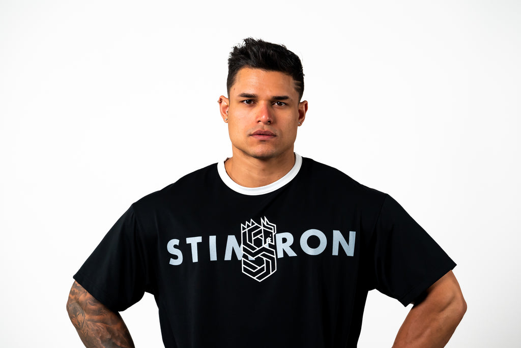 かつてボディビル界のブルースリーと称され、今や山岸秀匡のトレードマークでもあるドラゴン。左腕に見えるドラゴンをモチーフにSTIMIRONの新しいラインとして、「アイアンドラゴンロゴ」を作りました。