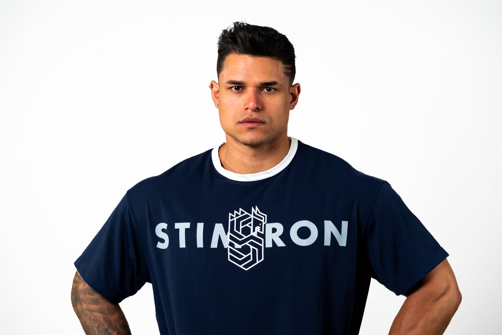 かつてボディビル界のブルースリーと称され、今や山岸秀匡のトレードマークでもあるドラゴン。左腕に見えるドラゴンをモチーフにSTIMIRONの新しいラインとして、「アイアンドラゴンロゴ」を作りました。