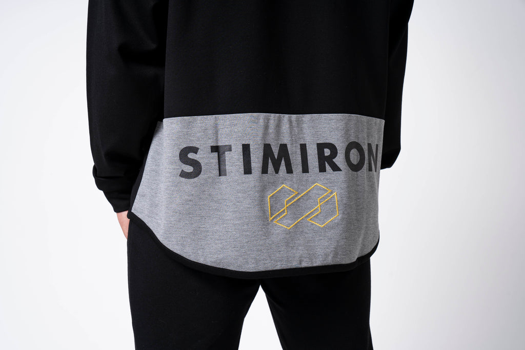 ーカジュアルに魅せるデザイン性のこだわり。自信と強さを与えてくれるSTIMIRONの文字。大きなアイアンロゴは刺繍を採用しました。