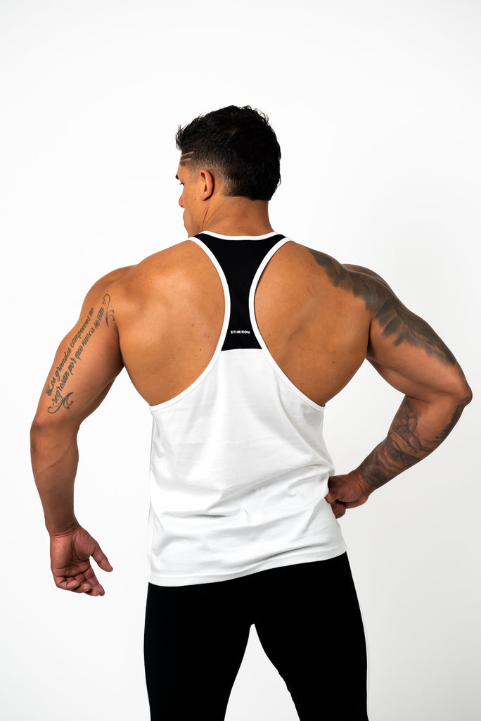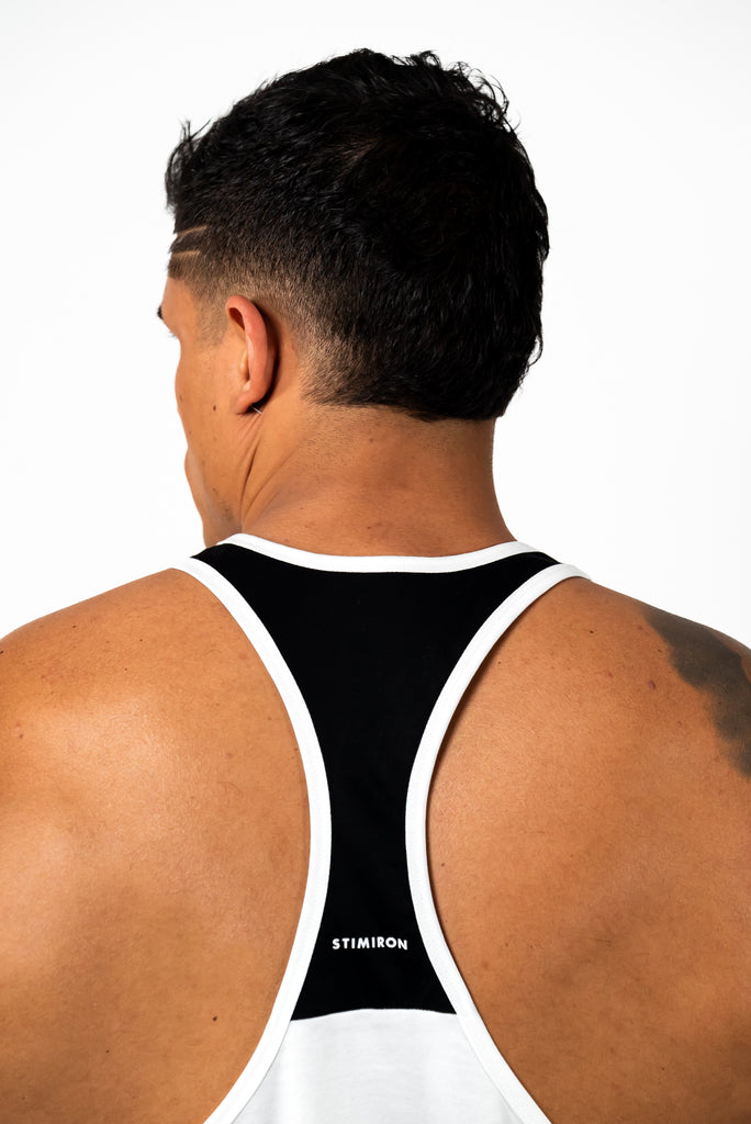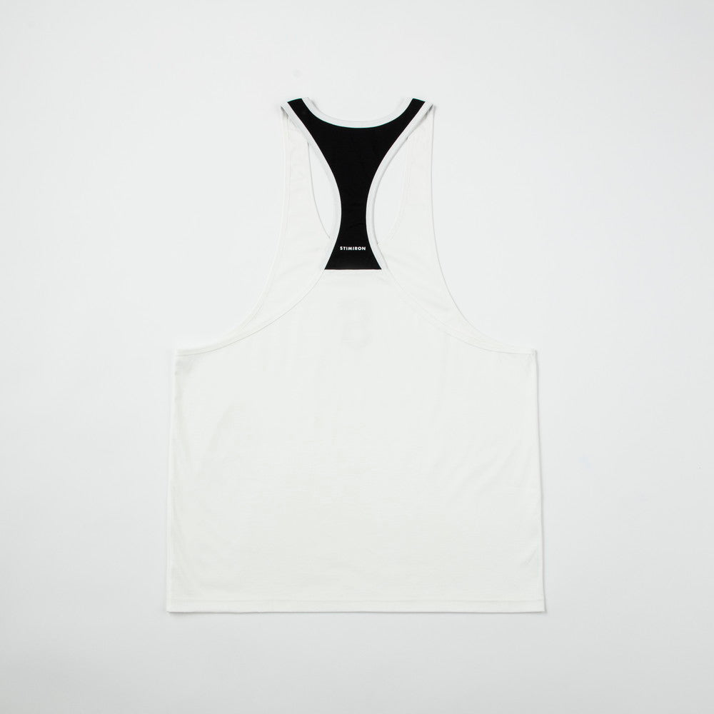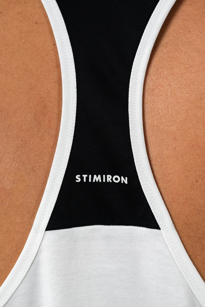 このストリンガータイプのタンクトップは、フロントにシンプルなドラゴンロゴをデザインし、背中にはカラーの切り替えしとSTIMIRONの文字を配置した、印象的なデザイン。