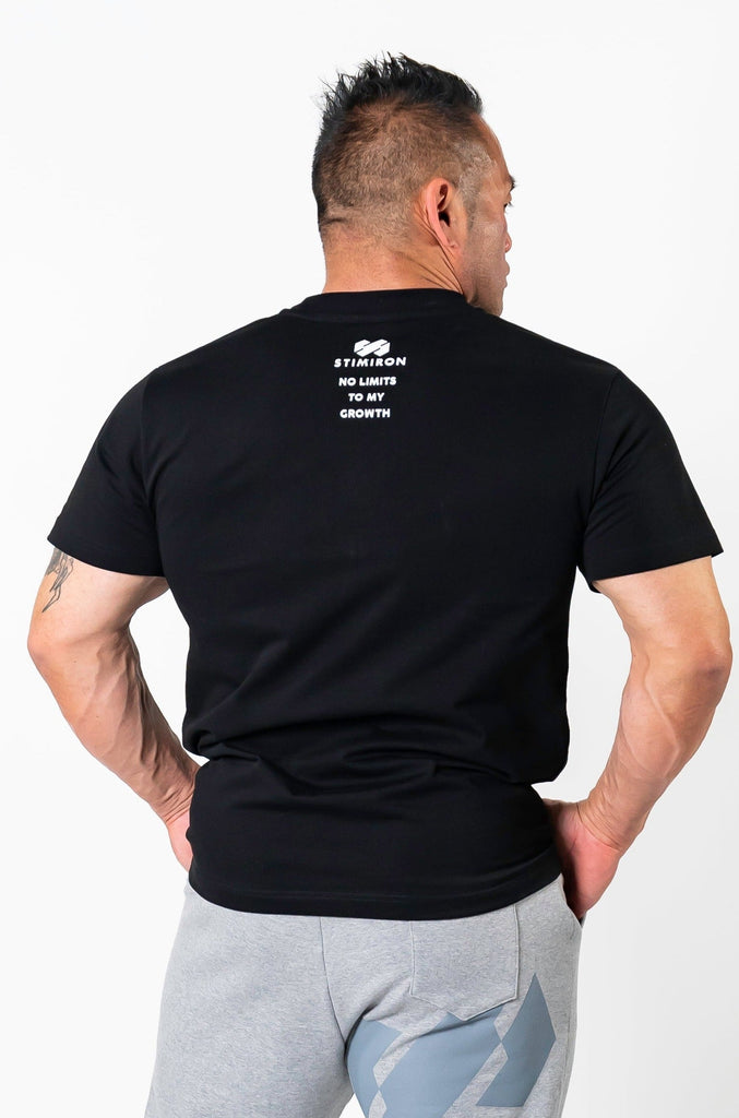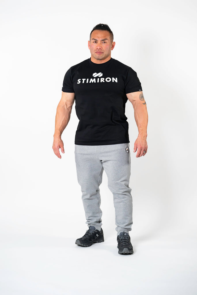 STIMIRONのベーシックスタイル。綿100%でもストレッチ性があり、心地よいフィット感がある。自宅とジムの往復でも着られるタウンユース要素あり。多色展開でオリジナル性が出せるのも魅力の一つ。